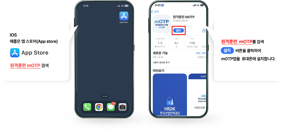 한우리평생교육원에서는 산업인력공단에서 배포하는 mOTP앱으로 본인인증을 권장드리고 있습니다.