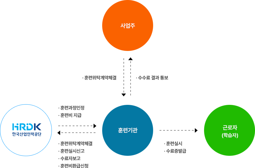사업주가 근로자, 채용예정자, 구직자 등을 대상으로 직업능력개발훈련을 실시할 경우 훈련비 등 소요비용의 일부를 지원함으로써 사업주 직업능력개발훈련 실시를 촉진하고 근로자의 능력개발 향상을 도모하는 제도
